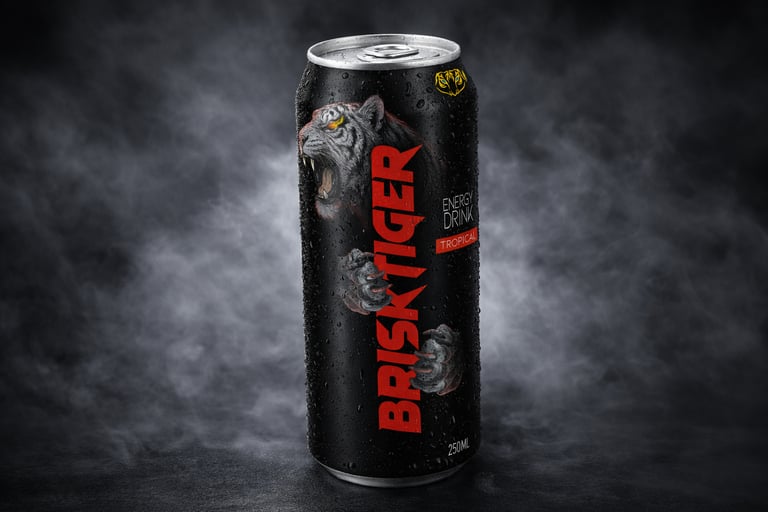 Brisk Tiger is a conceptual energy drink brand designed to communicate power, intensity and raw energy. The packaging aims to capture the aggressive spirit of an energy drink while creating a bold shelf presence that immediately grabs attention.